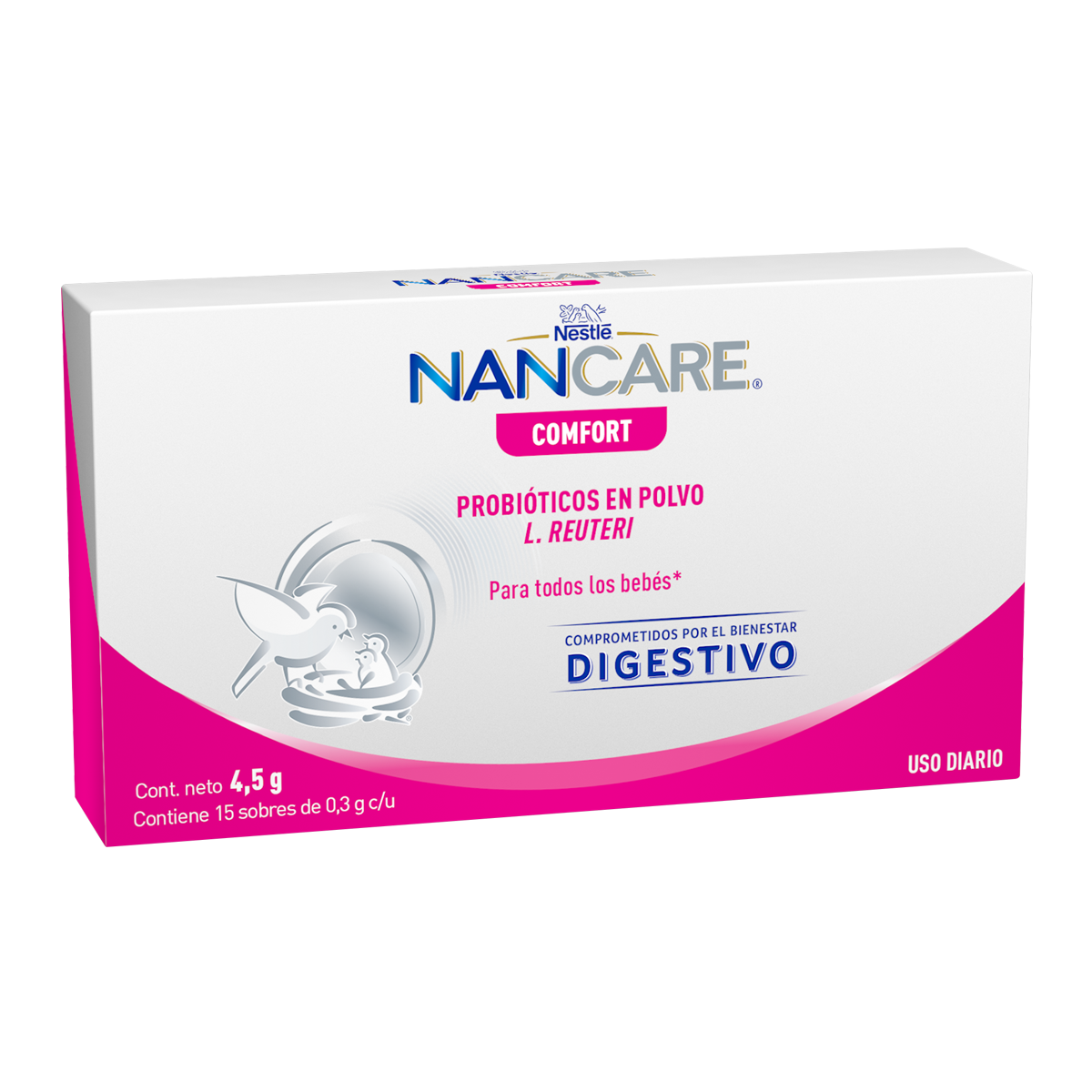 Descubre más sobre el desarrollo de tu hijo y embarazo En cada etapa estamos contigo. 3- Este producto se puede mezclar con leche materna o fórmula infantil. Nestlé NANCARE COMFORT Probióticos en polvo L.